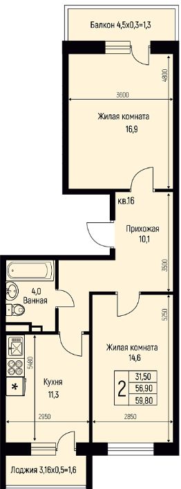Продаётся 2-комнатная квартира в строящемся доме (Литер 19), срок сдачи: IV-кв. 2025, общей площадью 59.8 кв.м., на 2 этаже. Новый жилой комплекс "Nova Vita" от застройщика МЕТРИКС DEVELOPMENT расположен по адресу Краснодар, посёлок Берёзовый, улица имени А.Н. Лодыгина.