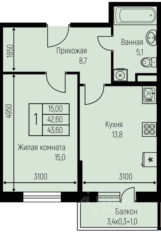 Продаётся 1-комнатная квартира в строящемся доме (Литер 16), срок сдачи: IV-кв. 2025, общей площадью 43.6 кв.м., на 1 этаже. Новый жилой комплекс "Nova Vita" от застройщика МЕТРИКС DEVELOPMENT расположен по адресу Краснодар, посёлок Берёзовый, улица имени А.Н. Лодыгина.