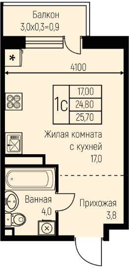 Продаётся студия в строящемся доме (Литер 16), срок сдачи: IV-кв. 2025, общей площадью 25.7 кв.м., на 2 этаже. Новый жилой комплекс "Nova Vita" от застройщика МЕТРИКС DEVELOPMENT расположен по адресу Краснодар, посёлок Берёзовый, улица имени А.Н. Лодыгина.