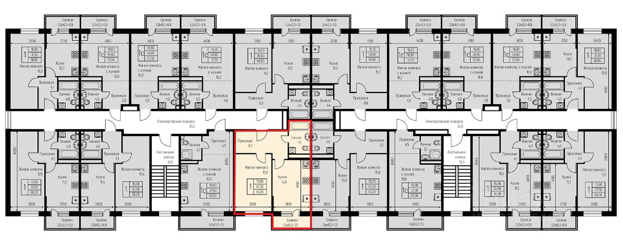 Продаётся 1-комнатная квартира в строящемся доме (Литер 16), срок сдачи: IV-кв. 2025, общей площадью 43.3 кв.м., на 3 этаже. Новый жилой комплекс "Nova Vita" от застройщика МЕТРИКС DEVELOPMENT расположен по адресу Краснодар, посёлок Берёзовый, улица имени А.Н. Лодыгина.