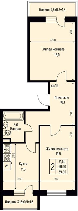 Продаётся 2-комнатная квартира в строящемся доме (Литер 21), срок сдачи: IV-кв. 2025, общей площадью 59.8 кв.м., на 2 этаже. Новый жилой комплекс "Nova Vita" от застройщика МЕТРИКС DEVELOPMENT расположен по адресу Краснодар, посёлок Берёзовый, улица имени А.Н. Лодыгина.