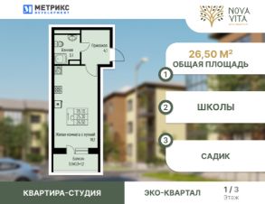 Продаётся студия в строящемся доме (Литер 17), срок сдачи: IV-кв. 2025, общей площадью 28.8 кв.м., на 1 этаже. Новый жилой комплекс "Nova Vita" от застройщика МЕТРИКС DEVELOPMENT расположен по адресу Краснодар, посёлок Берёзовый, улица имени А.Н. Лодыгина.