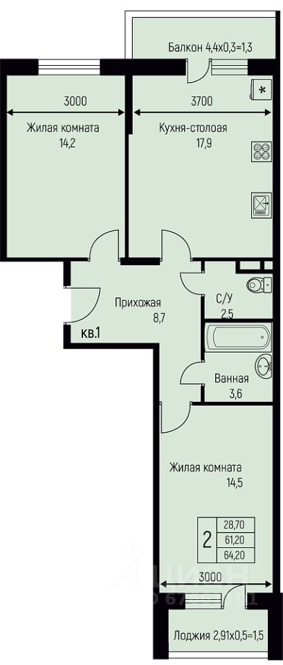 64,2 м²