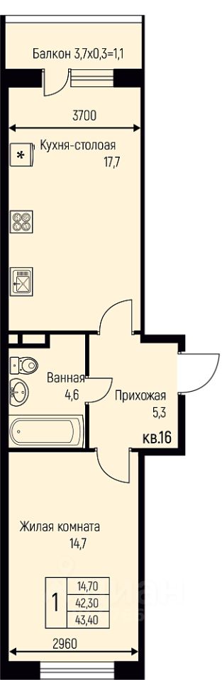 Продаётся 1-комнатная квартира в строящемся доме (Литер 9), срок сдачи: IV-кв. 2025, общей площадью 43.4 кв.м., на 1 этаже. Новый жилой комплекс "Nova Vita" от застройщика МЕТРИКС DEVELOPMENT расположен по адресу Краснодар, посёлок Берёзовый, улица имени А.Н. Лодыгина.