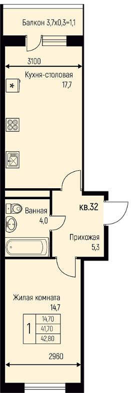 42,8 м²