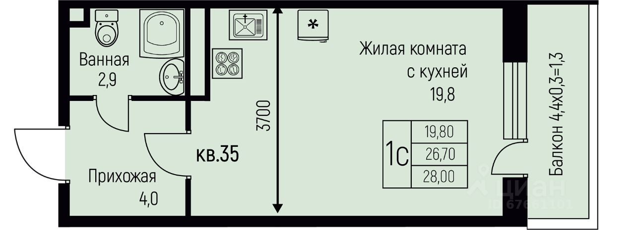 Продаётся студия в строящемся доме (Литер 9), срок сдачи: IV-кв. 2025, общей площадью 28 кв.м., на 3 этаже. Новый жилой комплекс "Nova Vita" от застройщика МЕТРИКС DEVELOPMENT расположен по адресу Краснодар, посёлок Берёзовый, улица имени А.Н. Лодыгина.
