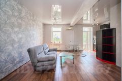 В квартире сделан качественный евроремонт. Просторные комнаты оформлены в современном стиле, а кухня оборудована всей необходимой техникой для удобного приготовления пищи. Санузел раздельный, выполнен в светлых тонах, что визуально увеличивает пространство. Из комнаты есть выход на балкон, где можно насладиться свежим воздухом и видом на улицу.