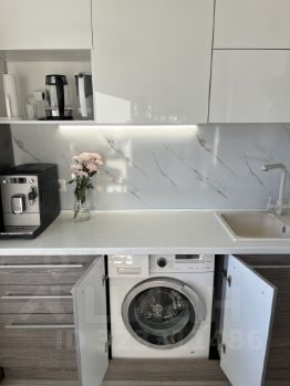 Пpоcторная куxня с полным набором техники: стиральная, посудомоечная машины, холодильник, духовка, вытяжка, варочная на 4, микроволновка. Выход на балкон, очень удобно и практично.