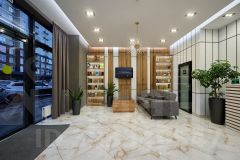 На первом этаже дома расположен холл с зоной отдыха и зоной ожидания для гостей.