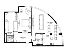 В квартире выполнена перепланировка (объединили гостиную с кухней). Перепланировка узаконена.