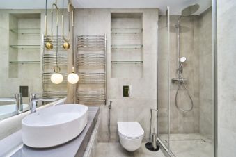 На полу широкоформатная плитка по периметру которой тёплый пол. Хорошие межкомнатные двери, широкоформатные плинтуса из дерева. Вся мебель и техника хорошего качества от лидирующих брендов в России остаётся новым хозяевам.