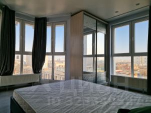 Основная спальня с панорамным окном и эркером, из которых открываются шикарные виды на город.