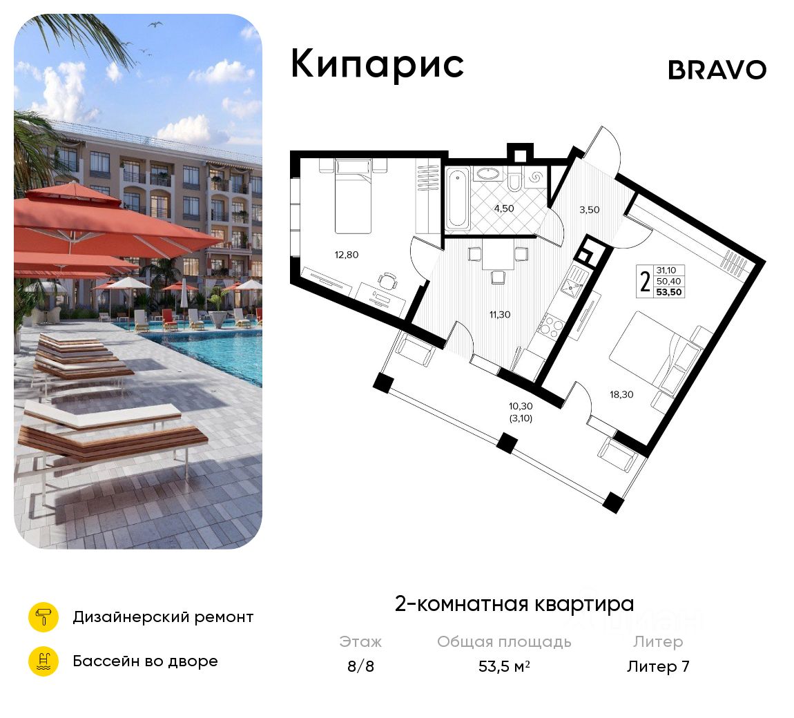 Продаётся 2-комн. квартира от застройщика c отделкой в ЖК "Кипарис" на 8 этаже. Общая площадь:53.5 кв.м., площадь просторной кухни-столовой:11.3. B квартире один балкон. Высота потолков 2.81 м.