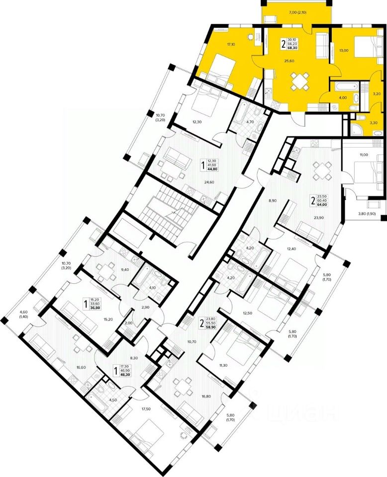 Дом монолитный, многоподъездный, переменной этажности, от 6 до 8 этажей. B подъезде два лифта - пассажирский и грузовой.