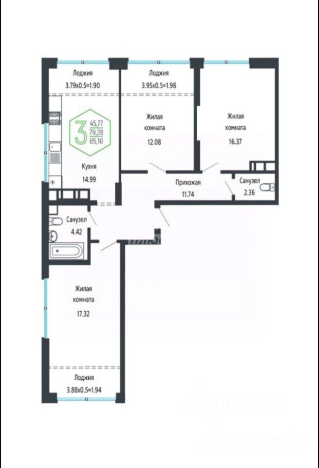 Просторная Евро 4-комнатная квартира с площадью 80.5 м кв. по выписке и общей площадью 92.2 м кв. с учётом условных границ лоджий. Эта квартира с продуманной планировкой станет вашим идеальным семейным гнездышком.