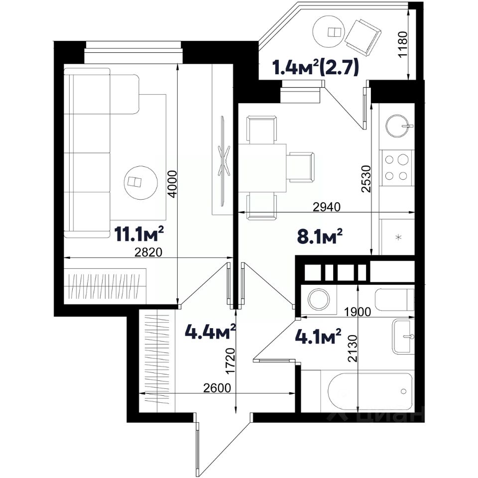 Общая площадь29,1 м²