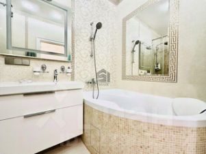 Планировка на две стороны света, просторная кухня-гостиная, две изолированные спальни, два санузла, большая гардеробная. Особая изюминка — домашний кинотеатр и караоке-зона с профессиональной акустикой, проектором и шумоизоляцией. Квартира полностью готова к проживанию, выполнен дорогой ремонт с использованием качественных материалов.