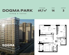 В продаже 3-комнатная квартира от застройщика! Мкр. "DOGMA PARK" г. Краснодар, Литер 30 Срок сдачи: 3 кв. 2027, общей площадью 69.7 кв.м., на 14 этаже.