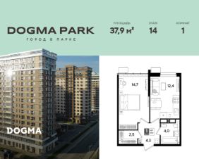 В продаже 1-комнатная квартира от застройщика! Мкр. "DOGMA PARK" г. Краснодар, Литер 30 Срок сдачи: 3 кв. 2027, общей площадью 37.9 кв.м., на 14 этаже.
