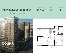 В продаже 2-комнатная квартира от застройщика! Мкр. "DOGMA PARK" г. Краснодар, Литер 30 Срок сдачи: 3 кв. 2027, общей площадью 53.6 кв.м., на 16 этаже.