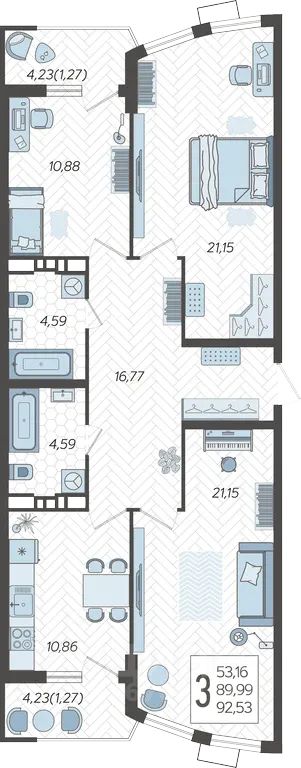 92,53 м²