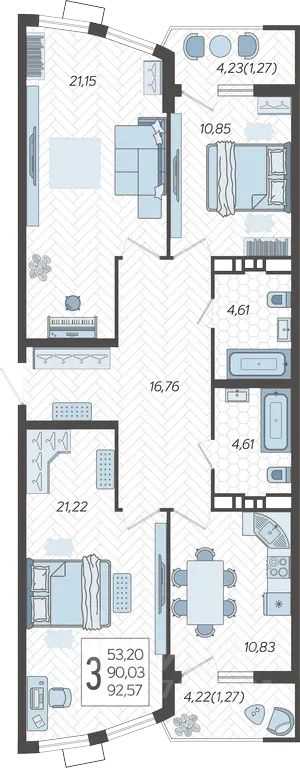 Продаётся 3-комнатная квартира в строящемся доме (Дом 100/8), срок сдачи: IV-кв. 2025, общей площадью 92.57 кв.м., на 10 этаже. Новый жилой комплекс "Альфа" от застройщика "Телекомстрой" расположен по адресу город Краснодар, Уральская улица.