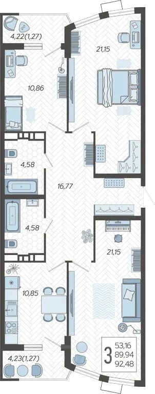 Продаётся 3-комнатная квартира в строящемся доме (Дом 100/8), срок сдачи: II-кв. 2026, общей площадью 92.48 кв.м., на 15 этаже. Новый жилой комплекс "Альфа" от застройщика "Телекомстрой" расположен по адресу город Краснодар, Уральская улица.