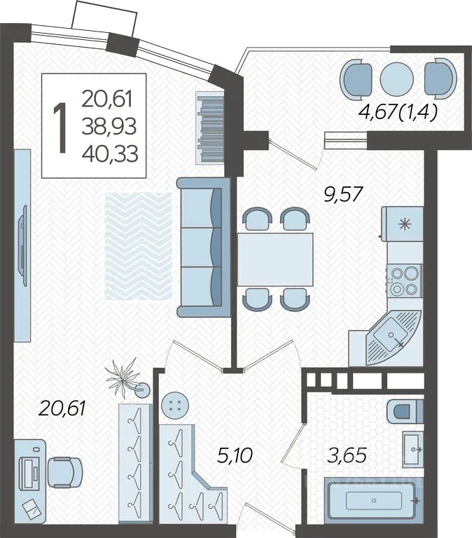 40,33 м²