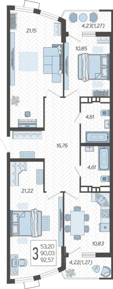 Продаётся 3-комнатная квартира в строящемся доме (Дом 100/8), срок сдачи: II-кв. 2026, общей площадью 92.57 кв.м., на 20 этаже. Новый жилой комплекс "Альфа" от застройщика "Телекомстрой" расположен по адресу город Краснодар, Уральская улица.