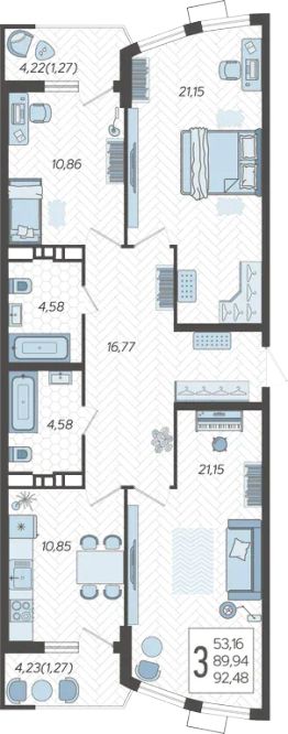 Продаётся 3-комнатная квартира в строящемся доме (Дом 100/8), срок сдачи: II-кв. 2026, общей площадью 92.48 кв.м., на 20 этаже. Новый жилой комплекс "Альфа" от застройщика "Телекомстрой" расположен по адресу город Краснодар, Уральская улица.