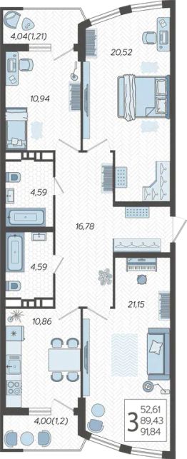 Продаётся 3-комнатная квартира в строящемся доме (Дом 100/6), срок сдачи: II-кв. 2026, общей площадью 91.84 кв.м., на 3 этаже. Новый жилой комплекс "Альфа" от застройщика "Телекомстрой" расположен по адресу город Краснодар, Уральская улица.