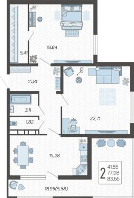 Продаётся 2-комнатная квартира в строящемся доме (Дом 100/6), срок сдачи: I-кв. 2026, общей площадью 83.21 кв.м., на 3 этаже. Новый жилой комплекс "Альфа" от застройщика "Телекомстрой" расположен по адресу город Краснодар, Уральская улица.