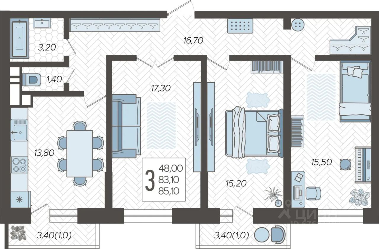 Продаётся 3-комнатная квартира в сданном доме (Литер 4), срок сдачи: IV-кв. 2024, общей площадью 86.23 кв.м., на 1 этаже. Новый жилой комплекс "Небо" от застройщика "АСК" расположен по адресу город Краснодар, Ярославская улица.