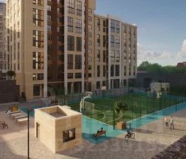 Площадь придомовой территории будет оформлена зелеными насаждениями, создавая приватное пространство для отдыха, детских игр и семейного досуга. Во дворе также будут пространства для занятий спортом и воркаутом. Парковка будет предусмотрена на подземном уровне с двухуровневым паркингом для жителей и гостевыми машиноместами.