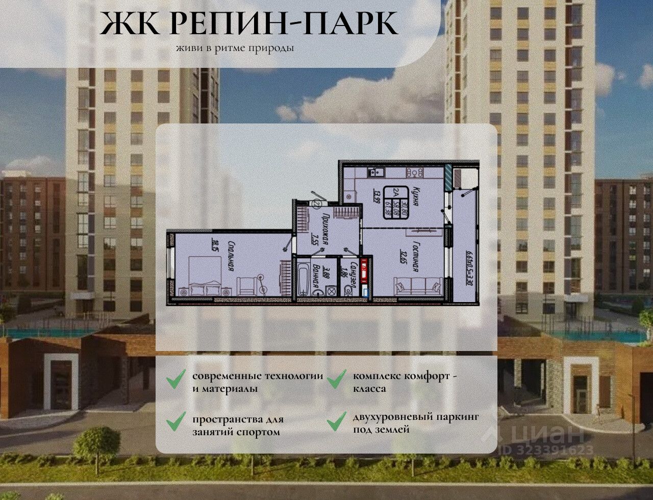 Уникальное предложение в жилом комплексе "Репин Парк"! Комплекс расположен всего в 10 минутах от центра Краснодара, в Фестивальном микрорайоне. Строгое соблюдение сроков и высокое качество строительства - главные преимущества "Репин Парк". Современные технологии и материалы обеспечивают надежность и экологичность зданий. Монолитный железобетон и трехслойные наружные стены обеспечивают прочность и сохраняют тепло. Переменная этажность комплекса от 9 до 18 этажей позволяет получить больше солнечного света для всех уровней квартир с внутренней стороны. Площадь придомовой территории будет оформлена зелеными насаждениями, создавая приватное пространство для отдыха, детских игр и семейного досуга. Во дворе также будут пространства для занятий спортом и воркаутом. Парковка будет предусмотрена на подземном уровне с двухуровневым паркингом для жителей и гостевыми машиноместами. Квартира сдается с уже завершенными черновыми работами, включая коммуникации, стяжку пола, разводку электросетей и теплоснабжения, остекление окон и балконов, установку радиаторов и входных дверей. В ЖК также предусмотрены индивидуальные кладовые помещения. Благодаря удобному расположению, жители "Репин Парк" могут наслаждаться пешей доступностью к крупным сетевым магазинам, фитнес-клубам, школам, детским садам, кафе, ресторанам и остановкам общественного транспорта. Удобная транспортная развязка обеспечивает простой доступ и избавляет от пробок. "Репин Парк" предлагает комфортное расположение, полный спектр социальных и инфраструктурных объектов, современные технологии и уютную атмосферу. Качество, комфорт и доступность - вот то, что делает "Репин Парк" особенным. Звоните нам прямо сейчас! Успейте купить свою счастливую квартиру!