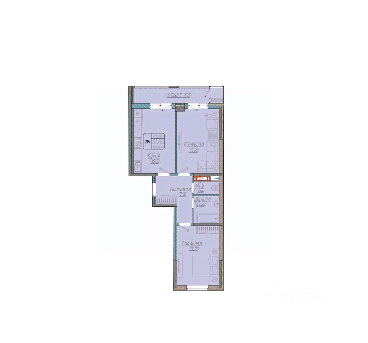 Общая площадь60,63 м²