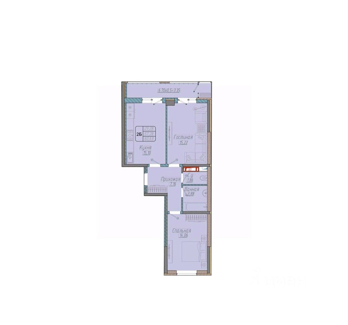 Квартира сдается с уже завершенными черновыми работами, включая коммуникации, стяжку пола, разводку электросетей и теплоснабжения, остекление окон и балконов, установку радиаторов и входных дверей. В ЖК также предусмотрены индивидуальные кладовые помещения.