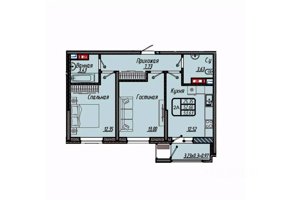 Общая площадь53,63 м²