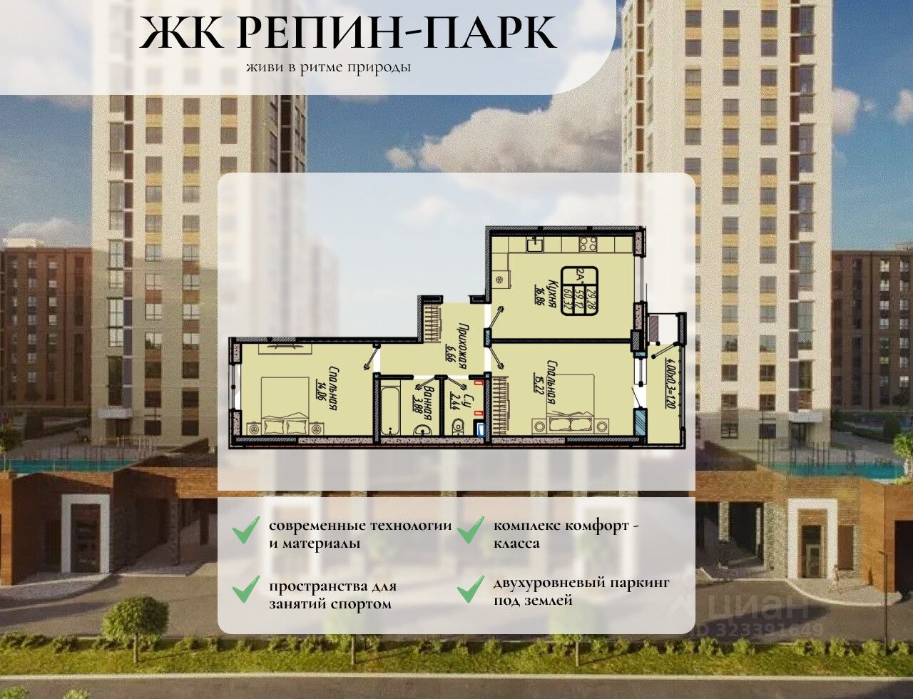 Уникальное предложение в жилом комплексе "Репин Парк"! Комплекс расположен всего в 10 минутах от центра Краснодара, в Фестивальном микрорайоне. Строгое соблюдение сроков и высокое качество строительства - главные преимущества "Репин Парк". Современные технологии и материалы обеспечивают надежность и экологичность зданий. Монолитный железобетон и трехслойные наружные стены обеспечивают прочность и сохраняют тепло. Переменная этажность комплекса от 9 до 18 этажей позволяет получить больше солнечного света для всех уровней квартир с внутренней стороны. Площадь придомовой территории будет оформлена зелеными насаждениями, создавая приватное пространство для отдыха, детских игр и семейного досуга. Во дворе также будут пространства для занятий спортом и воркаутом. Парковка будет предусмотрена на подземном уровне с двухуровневым паркингом для жителей и гостевыми машиноместами. Квартира сдается с уже завершенными черновыми работами, включая коммуникации, стяжку пола, разводку электросетей и теплоснабжения, остекление окон и балконов, установку радиаторов и входных дверей. В ЖК также предусмотрены индивидуальные кладовые помещения. Благодаря удобному расположению, жители "Репин Парк" могут наслаждаться пешей доступностью к крупным сетевым магазинам, фитнес-клубам, школам, детским садам, кафе, ресторанам и остановкам общественного транспорта. Удобная транспортная развязка обеспечивает простой доступ и избавляет от пробок. "Репин Парк" предлагает комфортное расположение, полный спектр социальных и инфраструктурных объектов, современные технологии и уютную атмосферу. Качество, комфорт и доступность - вот то, что делает "Репин Парк" особенным. Звоните нам прямо сейчас! Успейте купить свою счастливую квартиру!