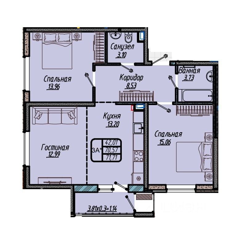 Квартира сдается с уже завершенными черновыми работами, включая коммуникации, стяжку пола, разводку электросетей и теплоснабжения, остекление окон и балконов, установку радиаторов и входных дверей. В ЖК также предусмотрены индивидуальные кладовые помещения.