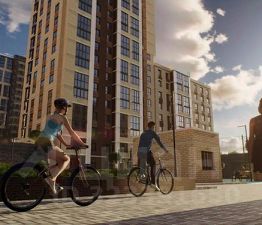 Площадь придомовой территории будет оформлена зелеными насаждениями, создавая приватное пространство для отдыха, детских игр и семейного досуга. Во дворе также будут пространства для занятий спортом и воркаутом. Парковка будет предусмотрена на подземном уровне с двухуровневым паркингом для жителей и гостевыми машиноместами.