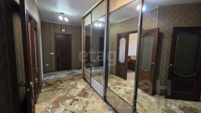 Все межкомнатные двери изготовлены из массива, а при входе расположен вместительный шкаф-купе с зеркальными дверями и кожаными вставками.