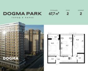 В продаже 2-комнатная квартира от застройщика! Мкр. "DOGMA PARK" г. Краснодар, Литер 8 Срок сдачи: 4 кв. 2026, общей площадью 67.7 кв.м., на 2 этаже.
