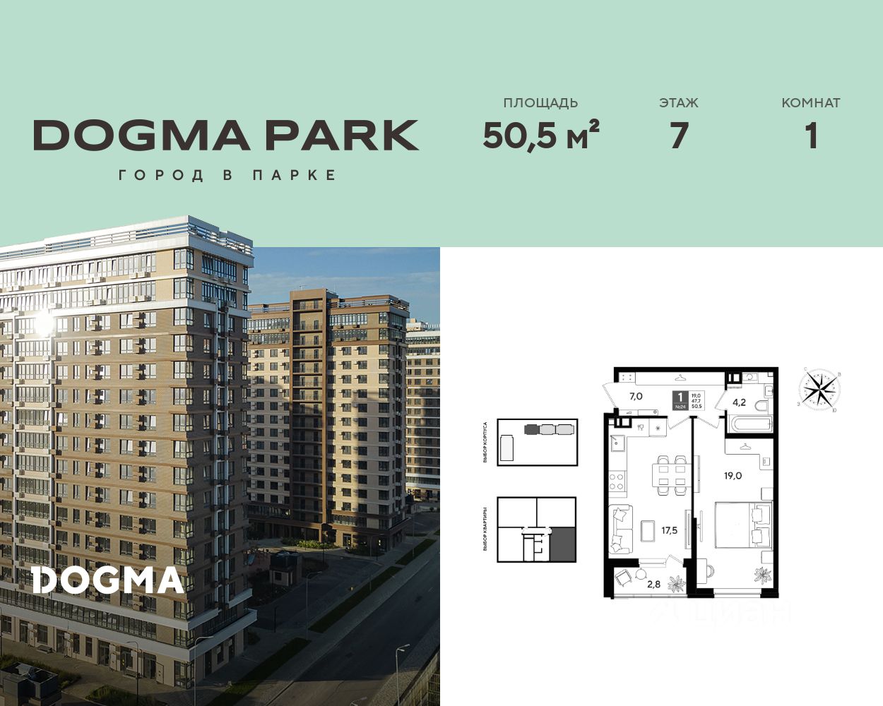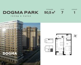 В продаже 1-комнатная квартира от застройщика! Мкр. "DOGMA PARK" г. Краснодар, Литер 8 Срок сдачи: 4 кв. 2026, общей площадью 50.5 кв.м., на 7 этаже.