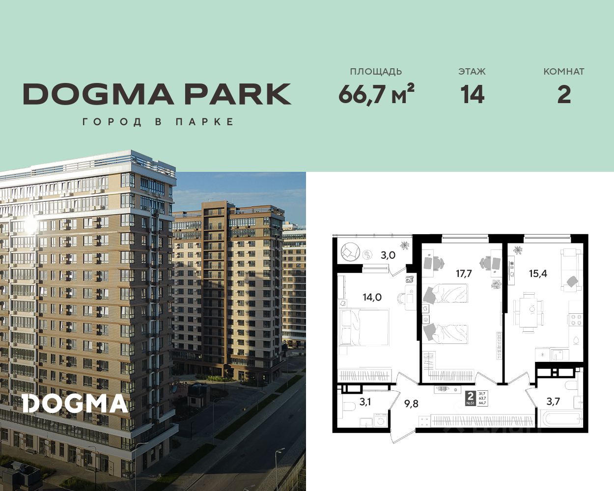 В продаже 2-комнатная квартира от застройщика! Мкр. "DOGMA PARK" г. Краснодар, Литер 8 Срок сдачи: 4 кв. 2026, общей площадью 66.7 кв.м., на 14 этаже.