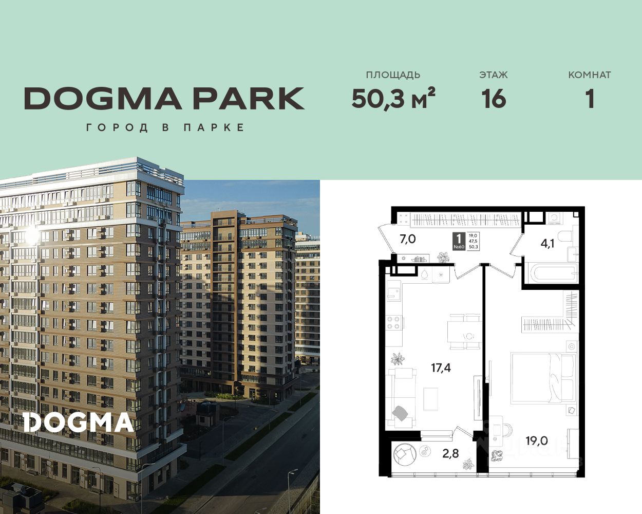 В продаже 1-комнатная квартира от застройщика! Мкр. "DOGMA PARK" г. Краснодар, Литер 8 Срок сдачи: 4 кв. 2026, общей площадью 50.3 кв.м., на 16 этаже.