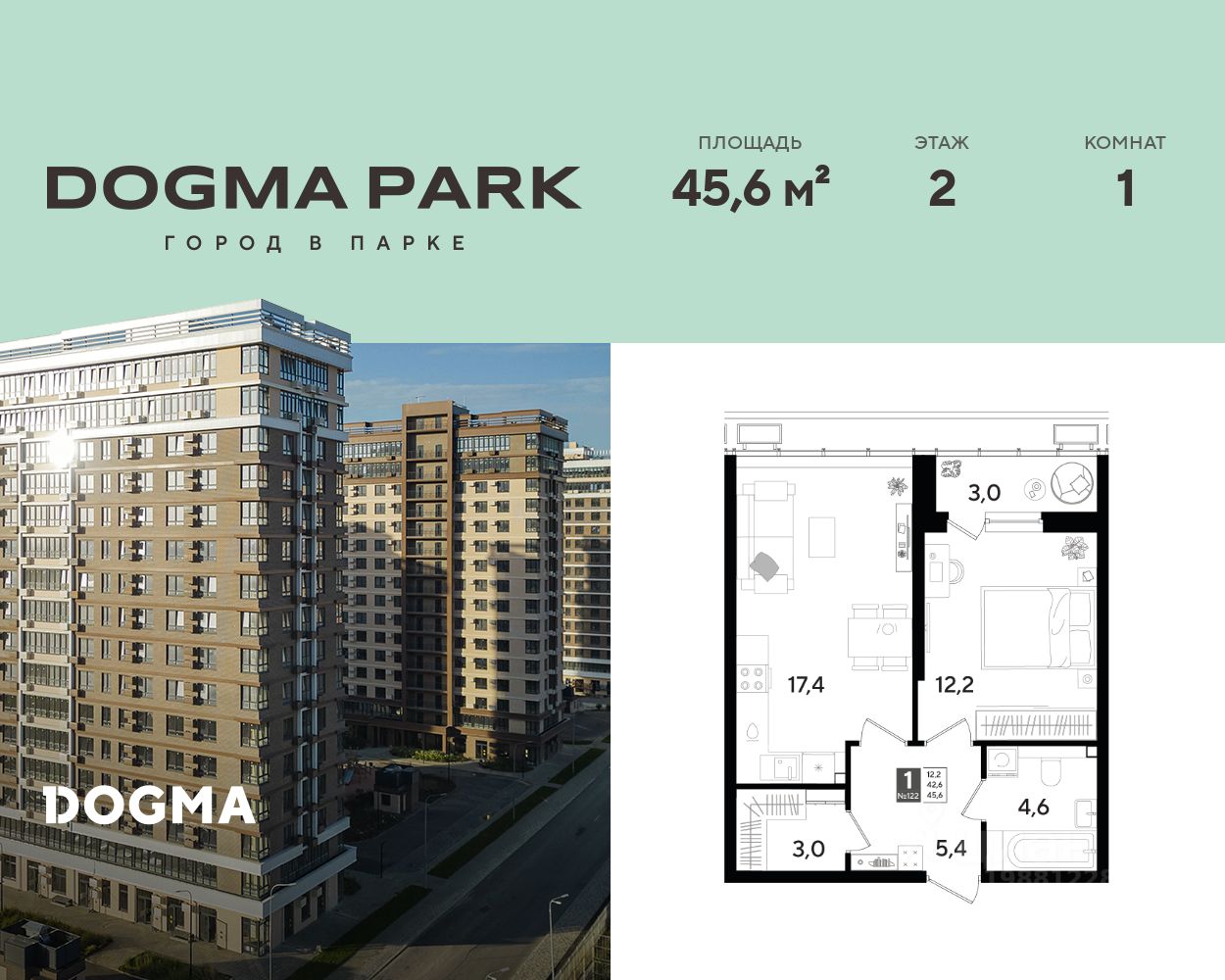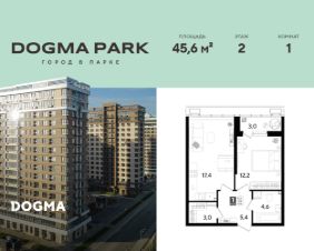 В продаже 1-комнатная квартира от застройщика! Мкр. "DOGMA PARK" г. Краснодар, Литер 8 Срок сдачи: 4 кв. 2026, общей площадью 45.6 кв.м., на 2 этаже.