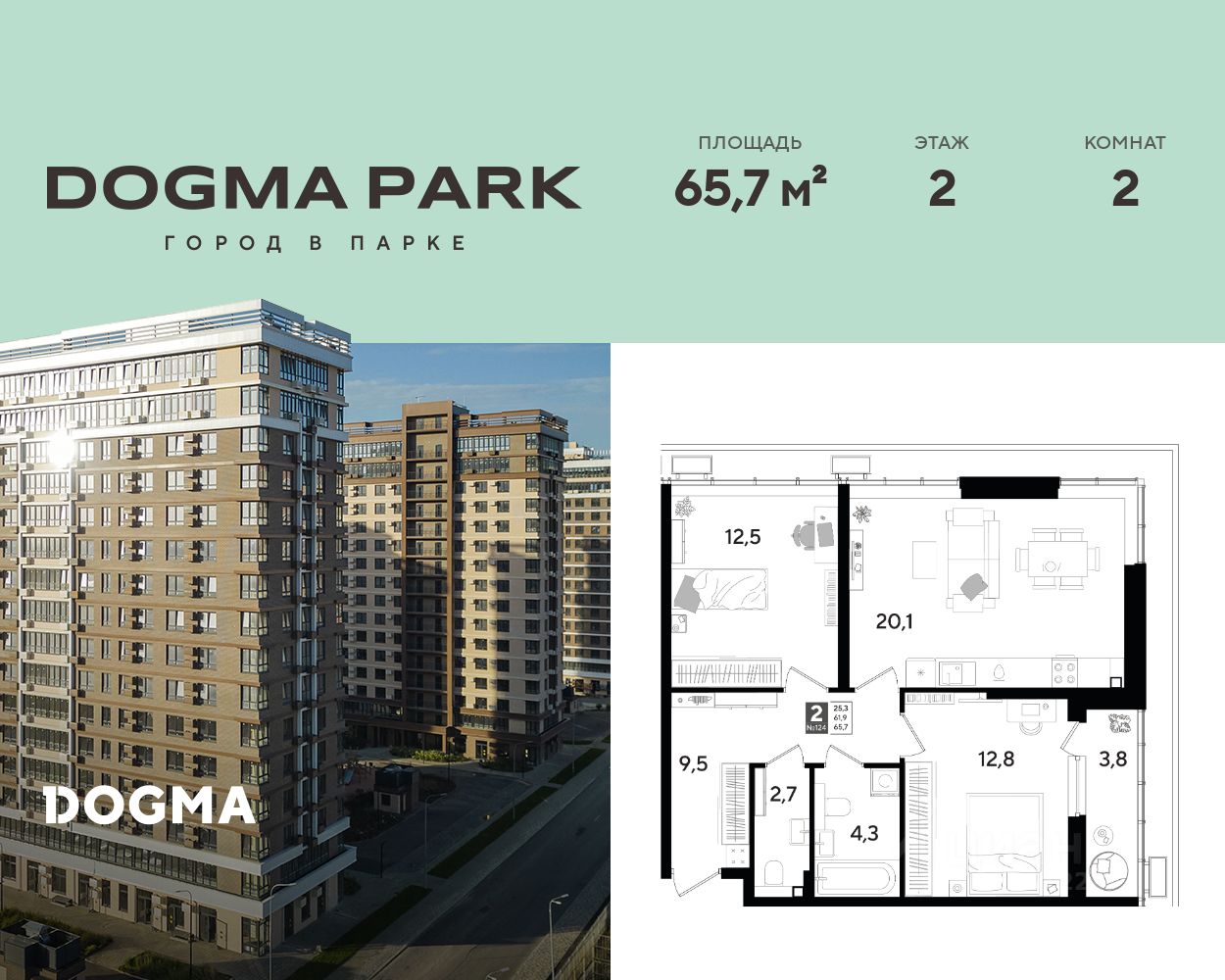 В продаже 2-комнатная квартира от застройщика! Мкр. "DOGMA PARK" г. Краснодар, Литер 8 Срок сдачи: 4 кв. 2026, общей площадью 65.7 кв.м., на 2 этаже.
