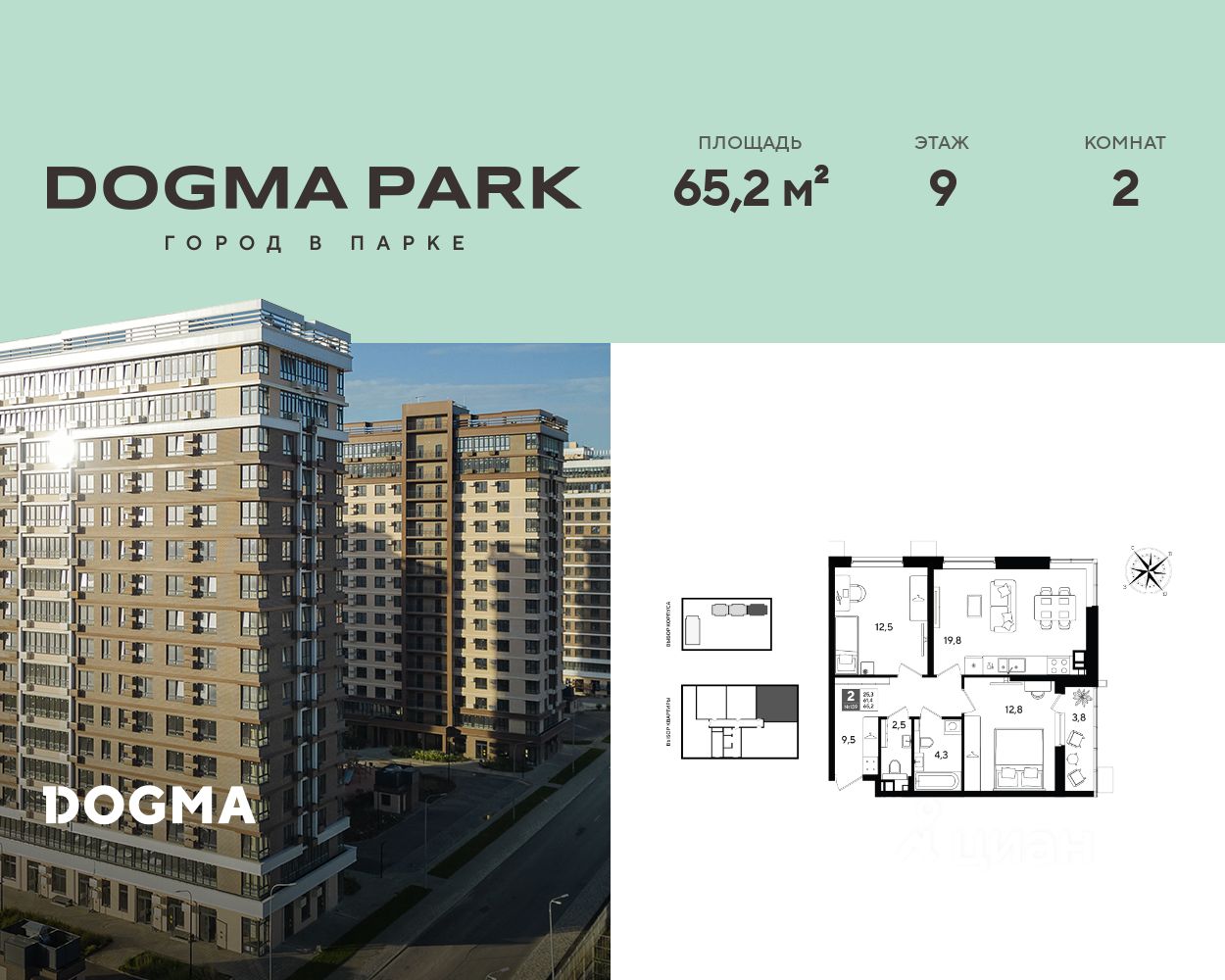В продаже 2-комнатная квартира от застройщика! Мкр. "DOGMA PARK" г. Краснодар, Литер 8 Срок сдачи: 4 кв. 2026, общей площадью 65.2 кв.м., на 9 этаже.