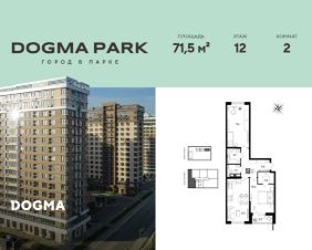 В продаже 2-комнатная квартира от застройщика! Мкр. "DOGMA PARK" г. Краснодар, Литер 8 Срок сдачи: 4 кв. 2026, общей площадью 71.5 кв.м., на 12 этаже.